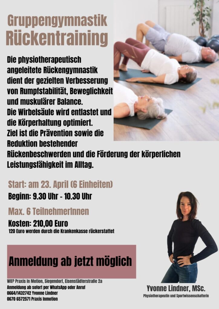 Anmeldung und Informationen unter: huber@praxis-inmotion.at